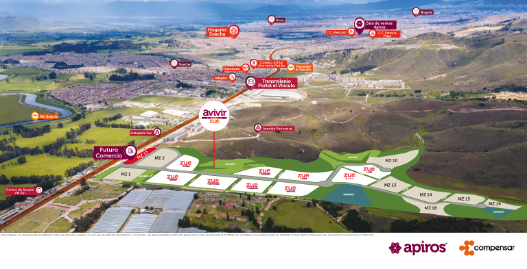 En una zona alejada de la congestión y a pocos minutos del centro de Soacha, avivir Zue es la opción de vivienda perfecta para conectarse con el sol y recargarse de su energía. En Soacha es posible disfrutar de la tranquilidad del sector y espacios de recreación para la familia.